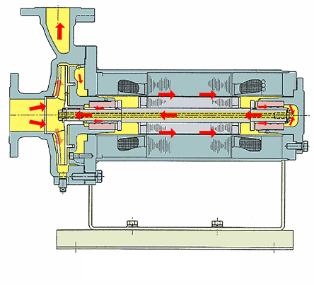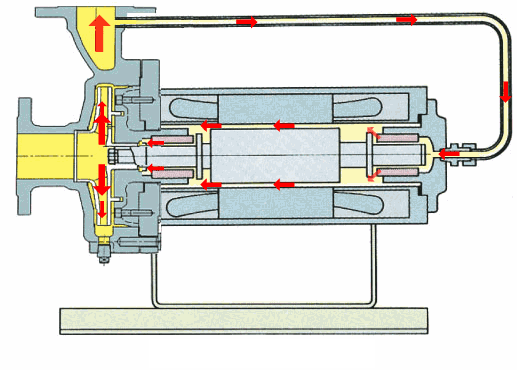 B型基本型屏蔽泵特點: 1、由于屏蔽泵采用滑動軸承,且用被輸送的介質來潤滑,故潤滑性差的介質不宜采用屏蔽泵輸送:一般地適合于屏蔽泵介質的粘度為0.1~20mPa.s。 2、輸送易汽化物料的逆循環型及逆向加壓型。 3、屏蔽泵的效率通常低于單端面機械密封離心泵,而與雙端面機械密封離心泵大致相當。正常的運轉還要確保其轉向正確。 4、長時間在小流量情況下運轉,屏蔽泵效率較低,會導致發熱、使液體蒸發,而造成泵干轉,從而損壞滑動軸承。